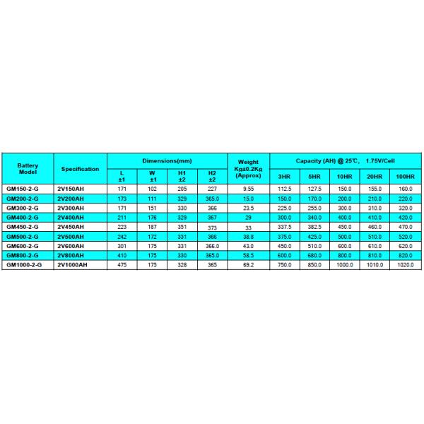 Model Number : 2V GMG Series Sealed Lead Acid GEL Battery